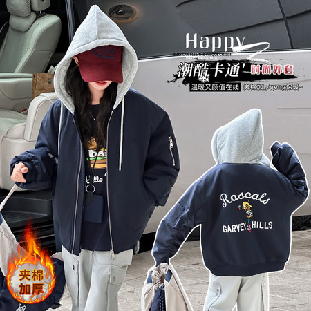 1*2下载视频“25113款拼接连帽刺绣加棉工装外套”